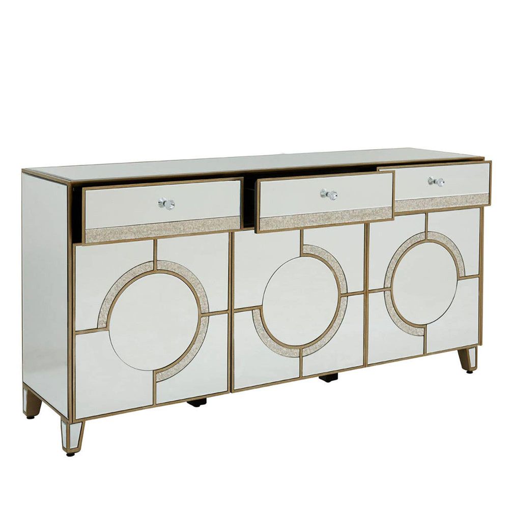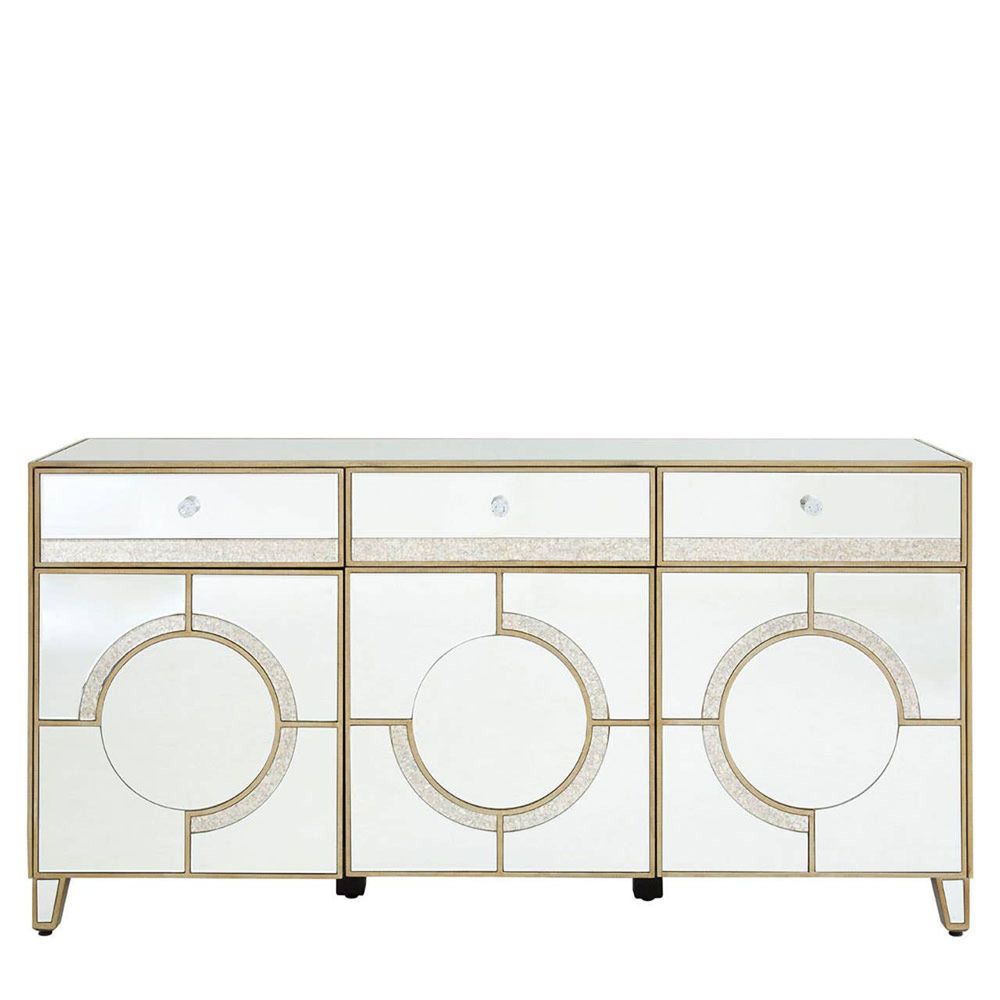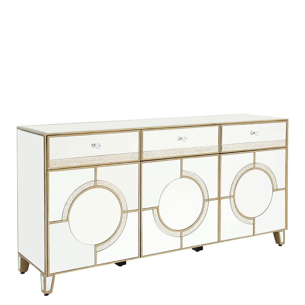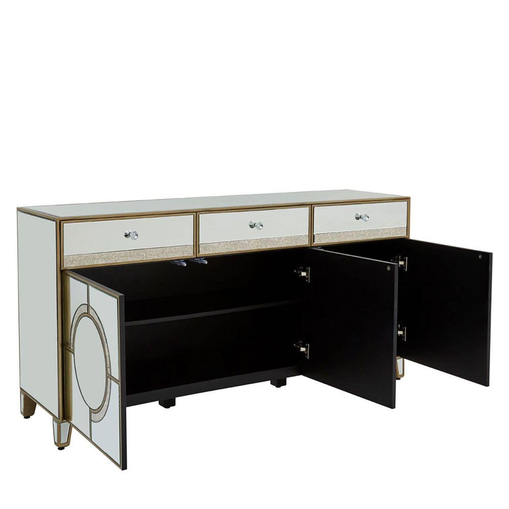 Knightsbridge Sideboard - 3 Door - Medium - Mirrored with Gold Trim - 158cm