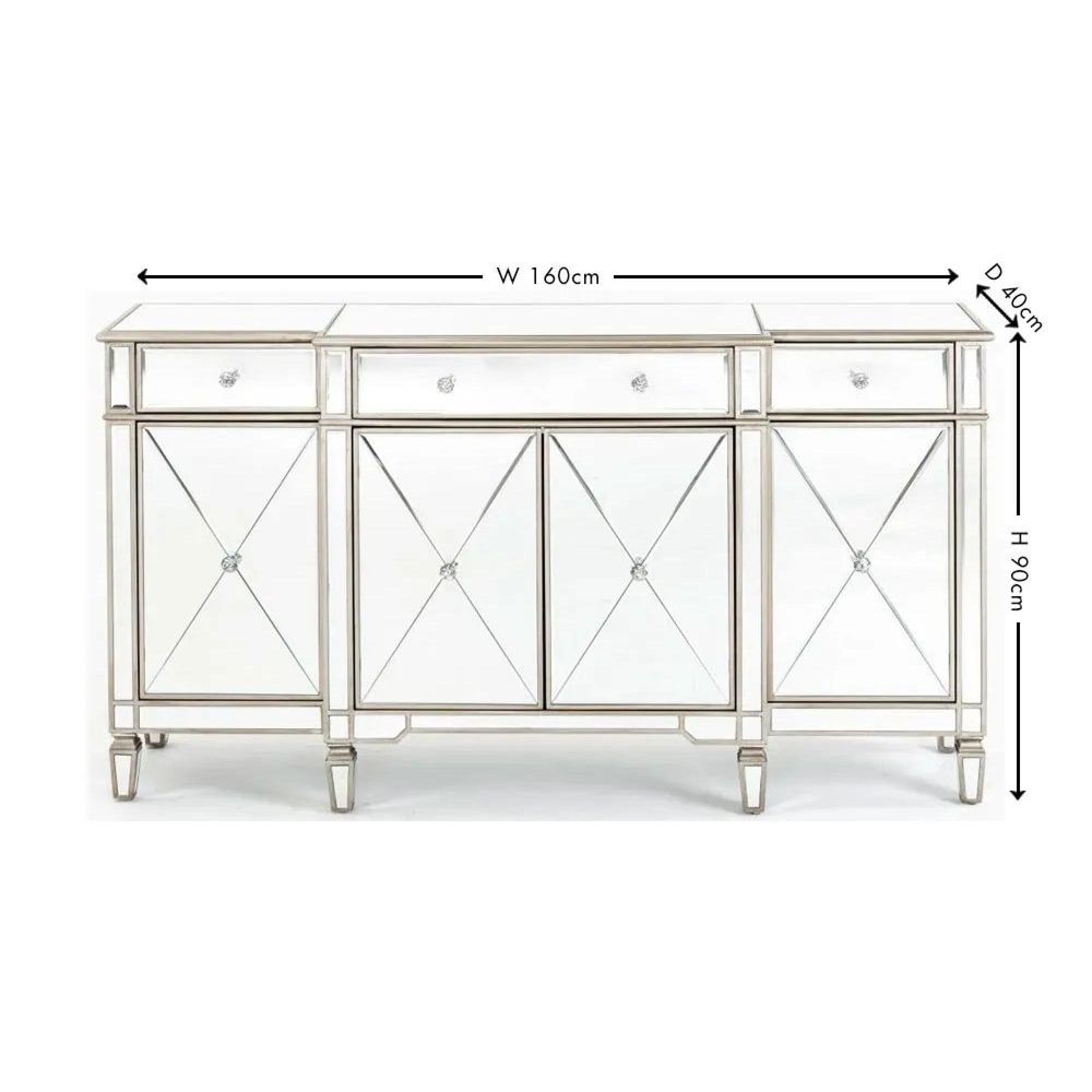 Whether you’re hosting guests, organising your dining space, or looking to add a statement piece to your living room, the Antoinette Mirrored Champagne Trim Sideboard delivers quality, sophistication, and function.