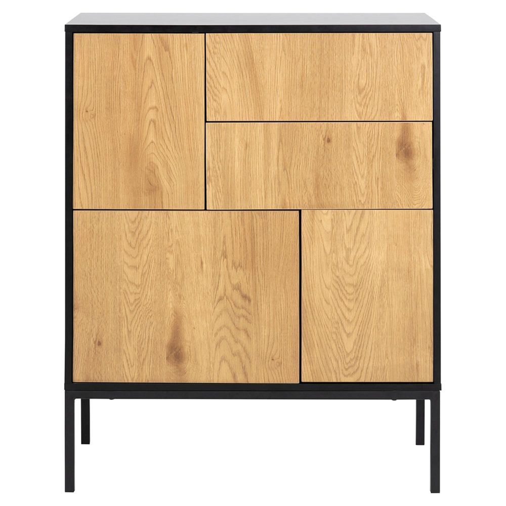 Seaford Small Sideboard - 3 Door - 80cm - Oak and Black Metal