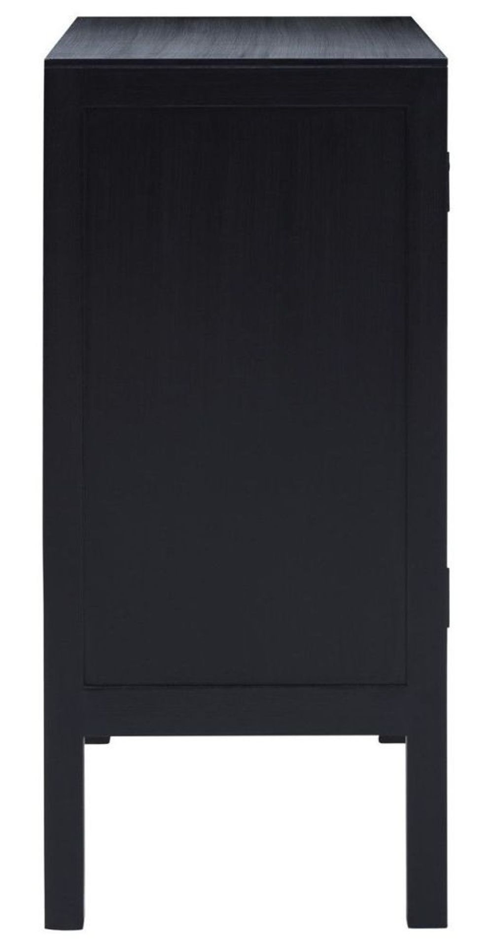 Item Code: 5527881 The Corso two door sideboard will suit nordic decors with the simple and elegant design.Made from renewable rattan, this black finish sideboard has clean lines creating a sophisticated aesthetic. Offering sample storage, two doors have natural criss cross pattern and matching handles which combine to give the low profile design a touch of warmth and texture.