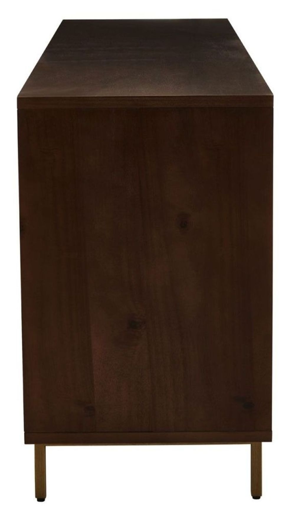 Item Code: 5529083 This sideboard with a mix patterned acacia wood and warm metallic accents, is sure to transform overall aesthetic in a contemporary setting.This sideboard offers ample warmth with acacia veneer finish frame featuring a herringbone pattern in light and dark brown tones. Offering ample storage, the drawers and shelves are complemented with antique brass finish handles that coordinate with sleek legs enhancing luxe sophistication.