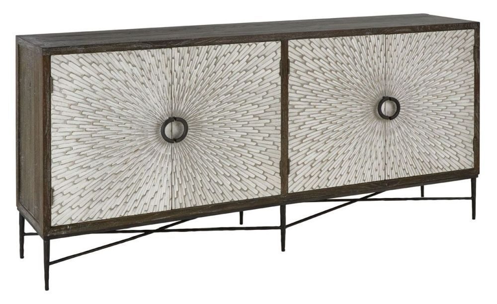 Milan Sideboard - Grey Starburst - Elm Wood - 4 Door - Extra Large - 200cm