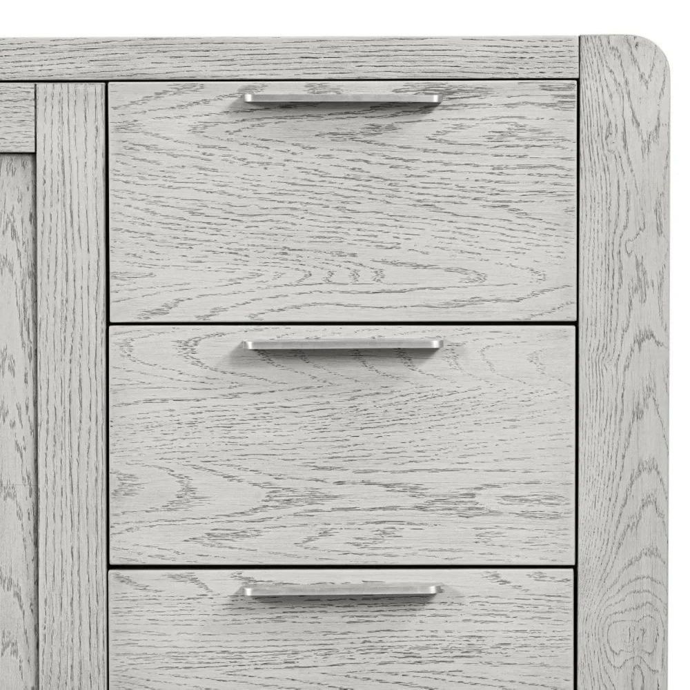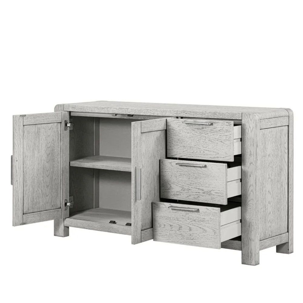 The Amsterdam Grey Washed Oak 140cm Medium Sideboard combines stylish design with practical storage, making it a versatile and elegant addition to your home.
