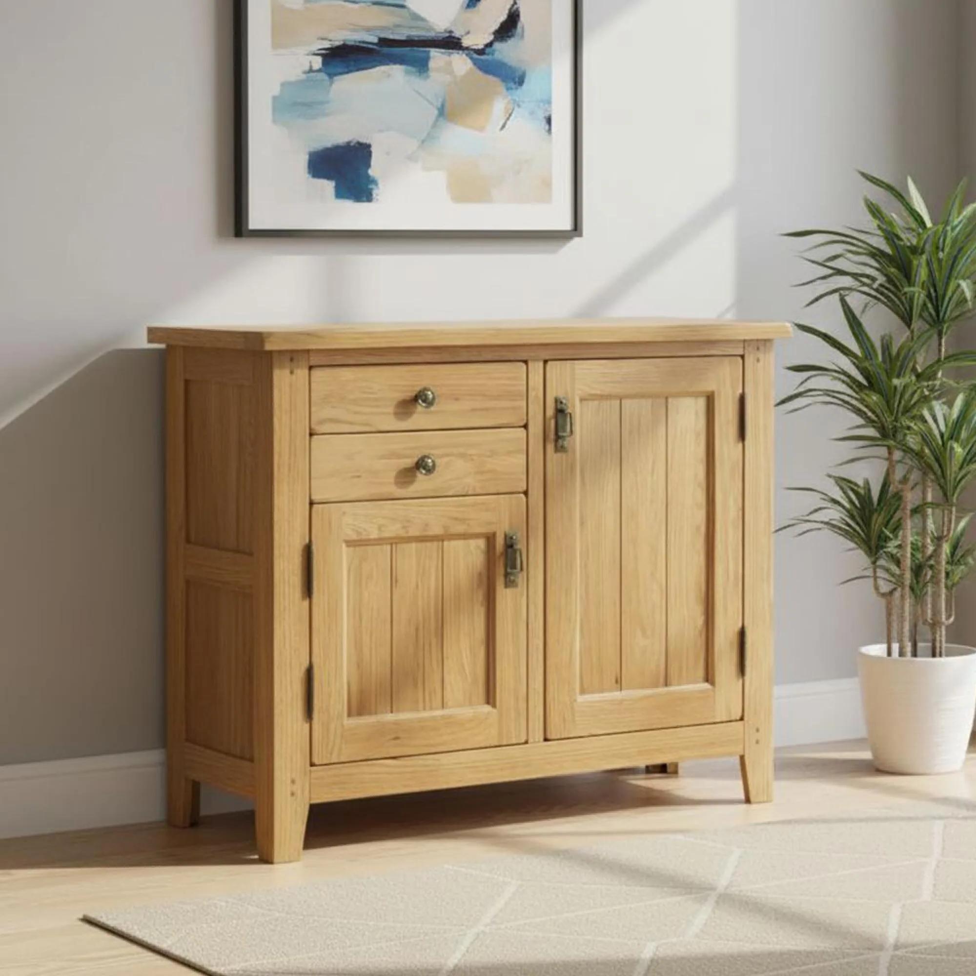 The Burford Oak Small 2 Door Sideboard is a stylish and practical storage solution, crafted to last and enhance the warmth and charm of your home.