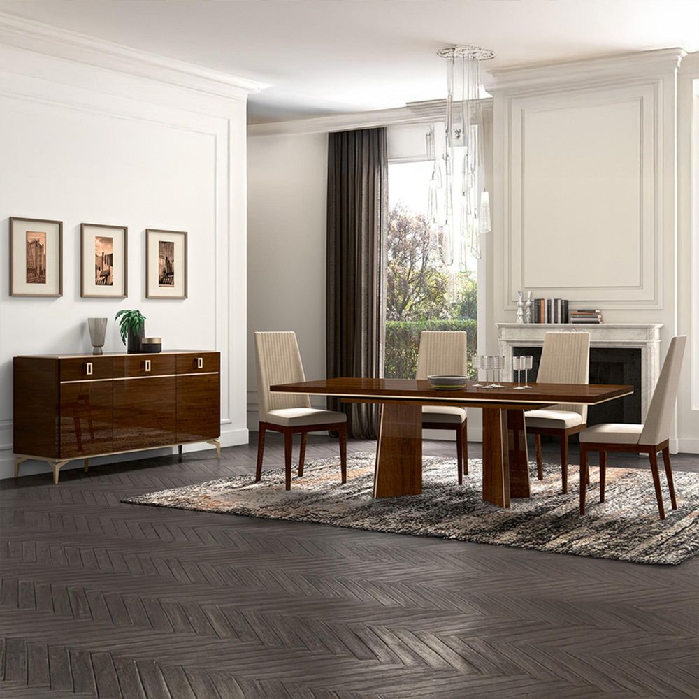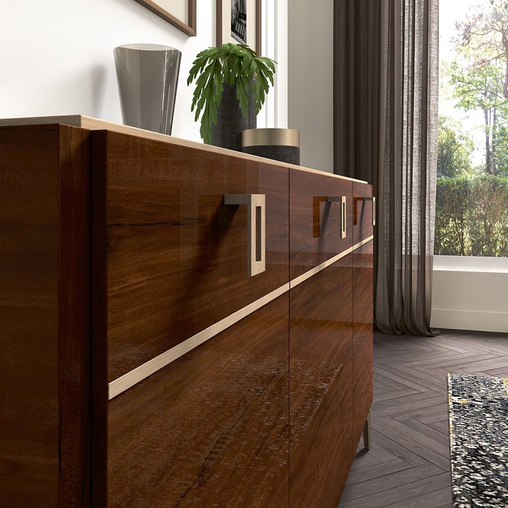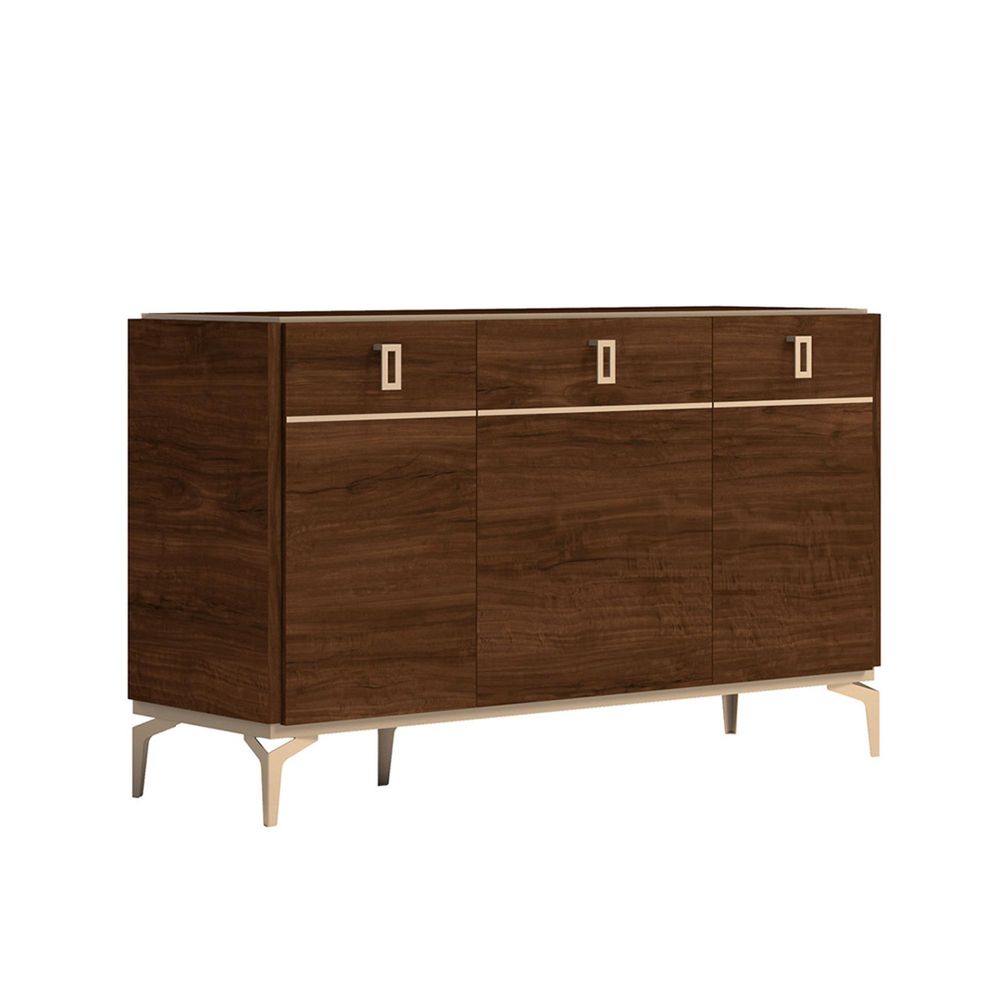 Modern Eva Medium Buffet Sideboard - 3 Doors - Walnut with Gold Trim