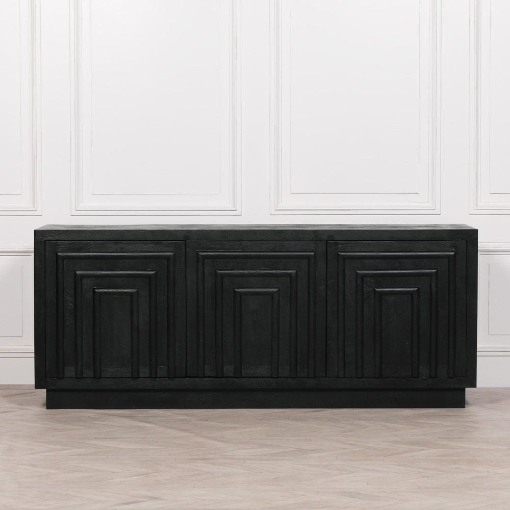 Contemporary Black Mango Wood Sideboard - 3 Door - Extra Large