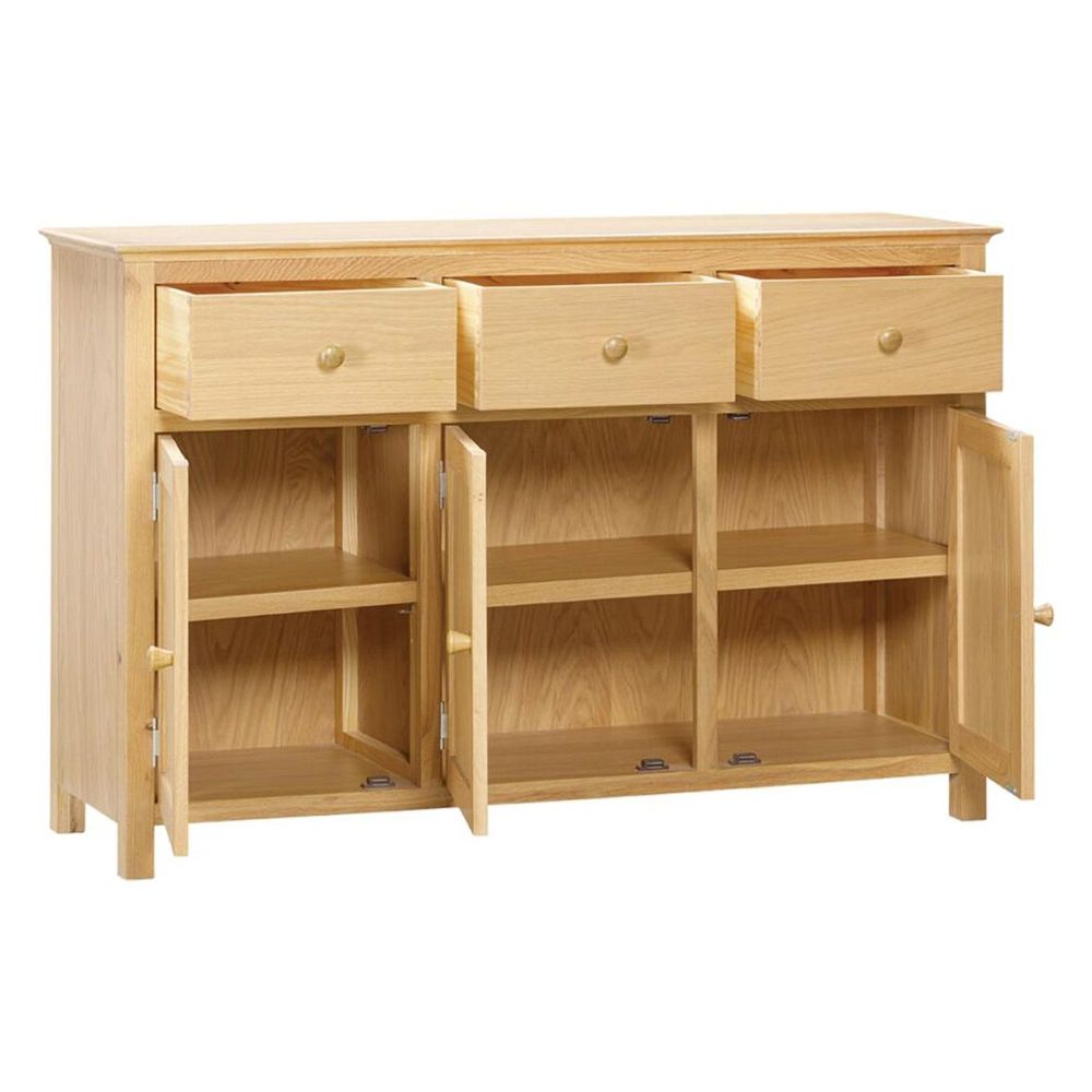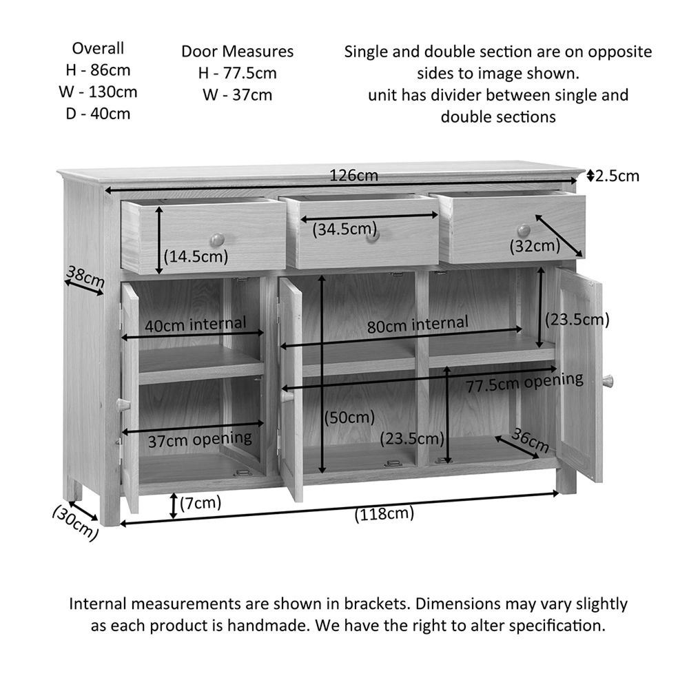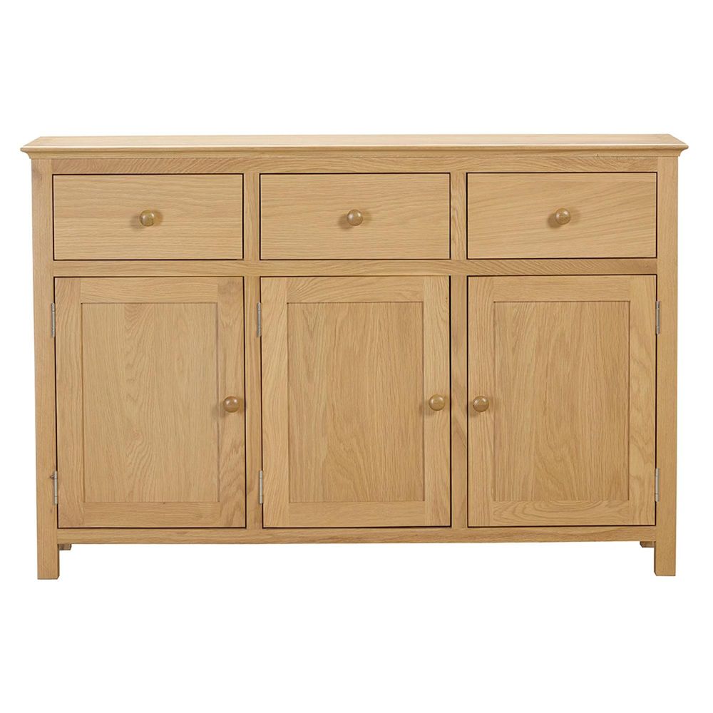 Crafted with precision and built to last, the Arlington Oak 130cm Medium 3 Door Sideboard is a timeless piece designed for those who appreciate quality, solid oak furniture with modern functionality. Blending classic craftsmanship with a clear, natural oak finish, this sideboard brings warmth and sophistication to your dining or living space.