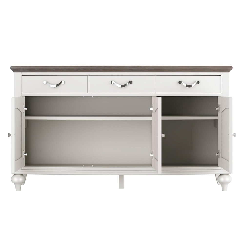 Montreux Wide Sideboard - 3 Drawer - Grey Washed Oak & Soft Grey