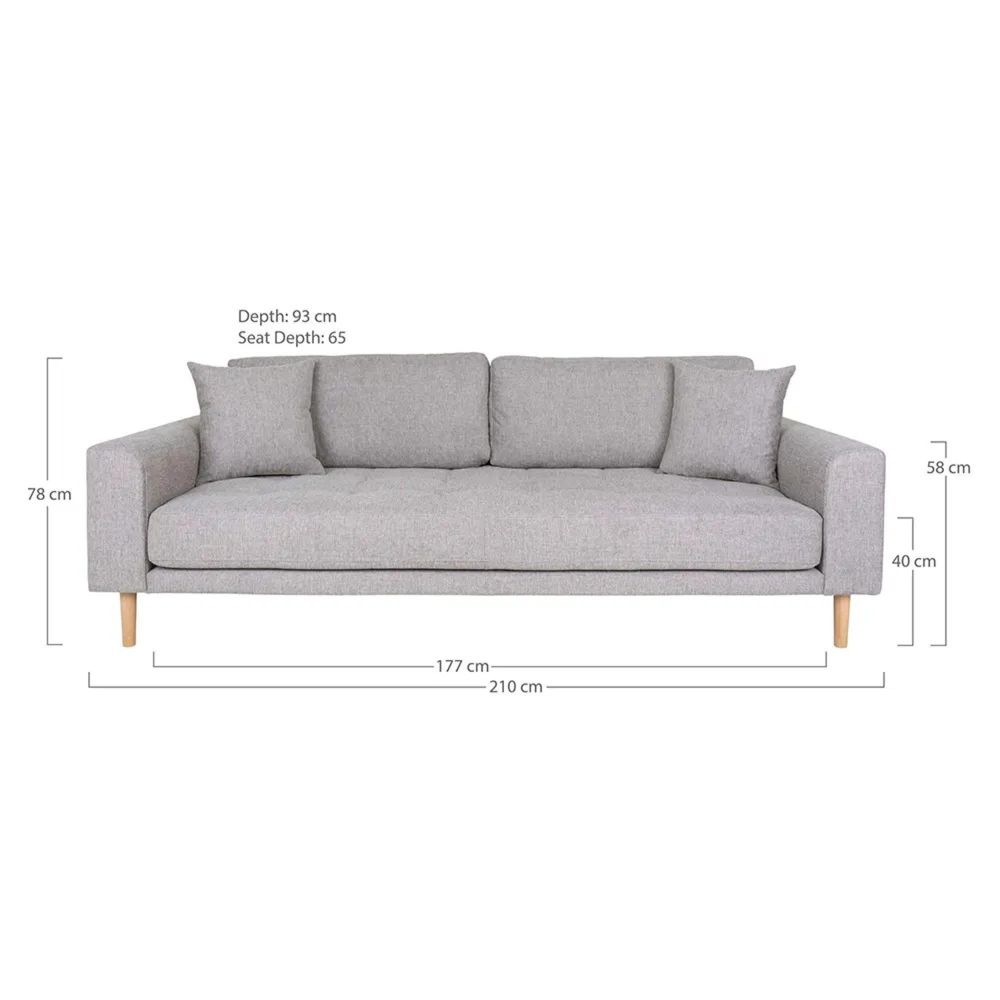 Crafted with a durable polyester fabric in a light grey finish, the Lido offers a tactile yet practical surface that’s easy to maintain. The interior frame is made of sturdy beech wood, ensuring strength and lasting support. Plush foam padding provides excellent comfort, while natural beech wood legs (16.5 cm height) lift the sofa gracefully from the floor, creating a sense of space and lightness.