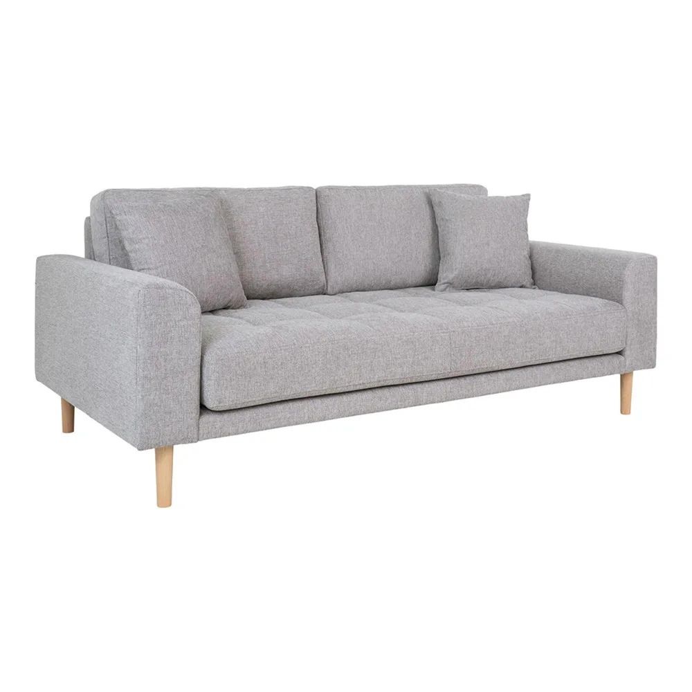 Upholstered in soft, durable polyester fabric with distinct square stitching across the seat and cushions, the Lido exudes understated charm. Its light grey tone complements a wide range of interior styles — from minimalist to contemporary — while the natural beech wood legs in a sand finish lend a warm, organic touch.
