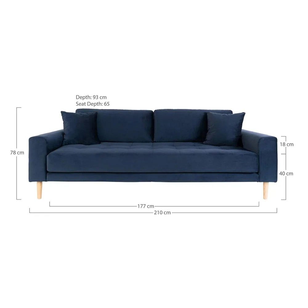 A refined statement piece for the modern home, the Lido Blue Velvet Fabric 3 Seater Sofa brings together Scandinavian clarity, deep comfort, and a warm, inviting presence. Its dark blue velvet finish offers a rich, understated sheen that feels soft to the touch while remaining durable enough for everyday living room use. Square-stitched detailing across the seat adds quiet structure, giving the sofa a tailored look that speaks to careful craftsmanship.