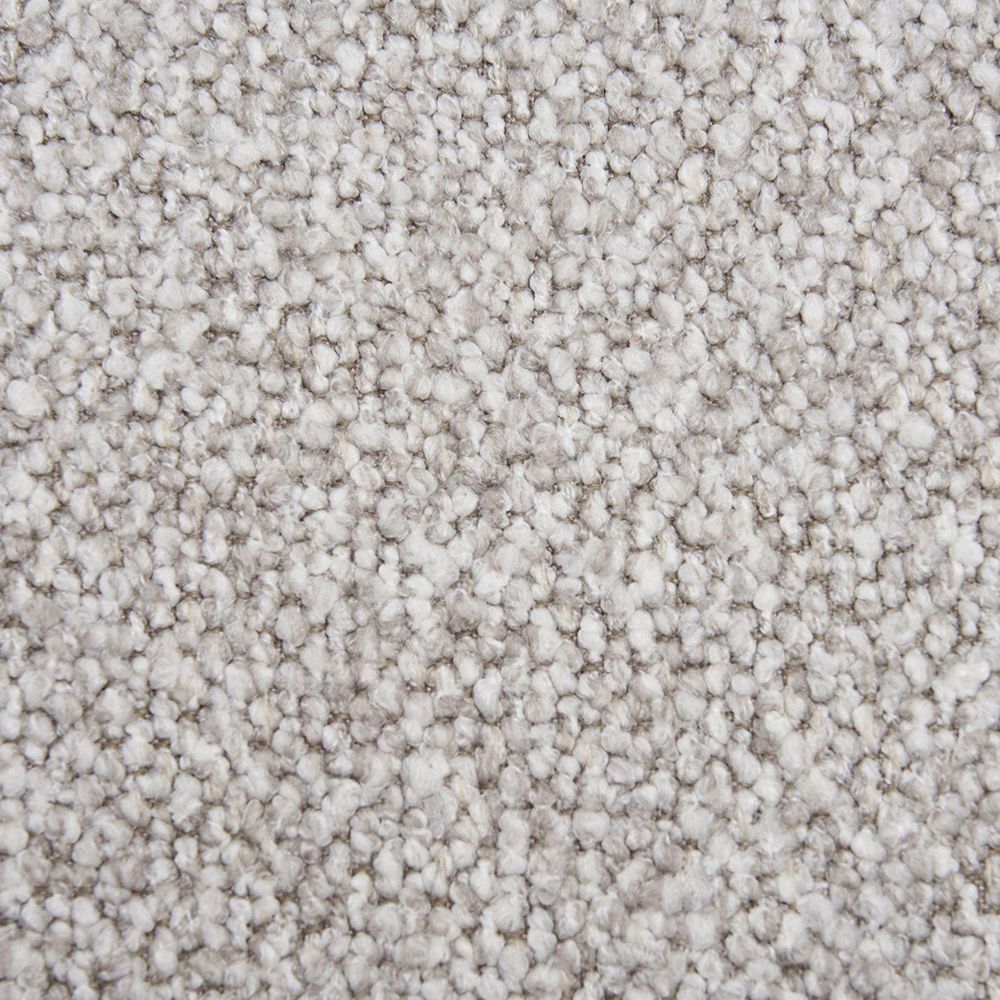 Upholstered in premium light grey polyester bouclé fabric.
