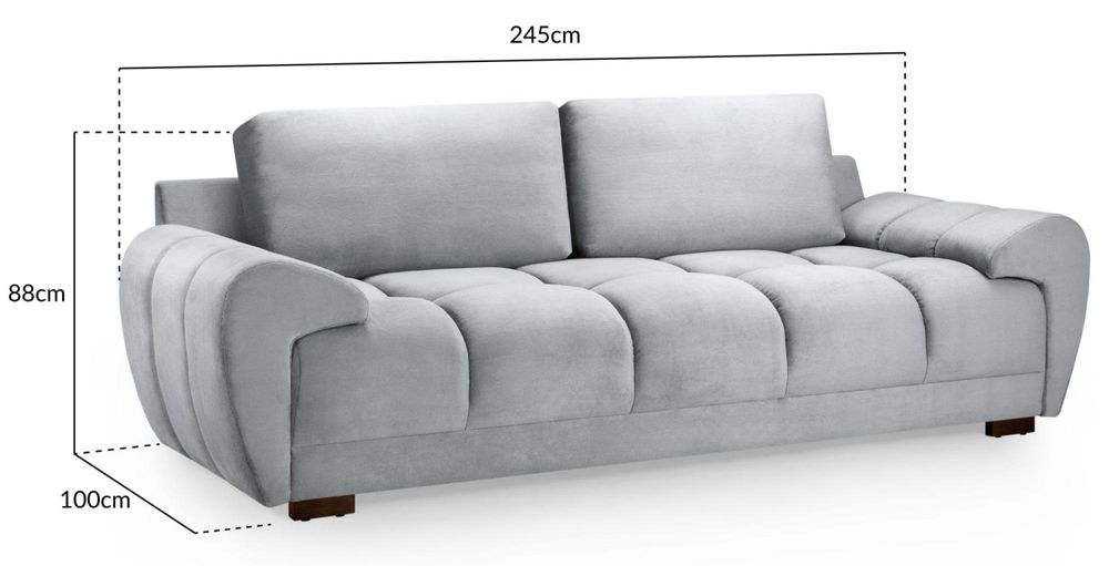 Item Code: BF-057 This Azzuro Sofa in Grey is a must-have for any living space. With anti-slip feet for added safety, a large convertible sofabed for extra sleeping space, and under sofa storage for organization, it's both practical and stylish. The plush velvet upholstery adds a touch of luxury to your home.