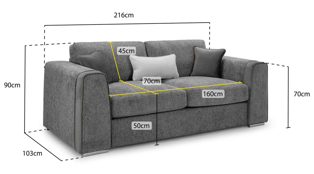 Naples Sofa - Grey Fabric - 3 Seater