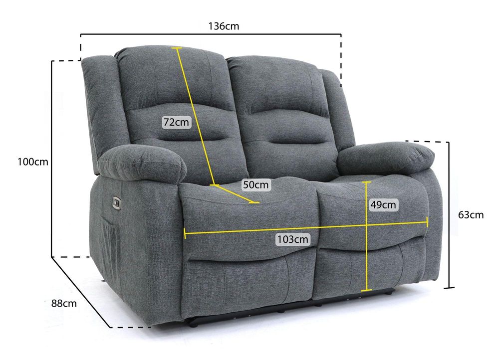 Alva Electric Recliner Sofa - Graphite Fabric - 2 Seater