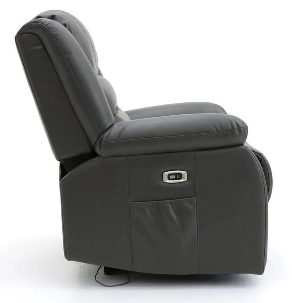 Alva Electric Recliner Sofa - Grey Faux Leather - 3 Seater