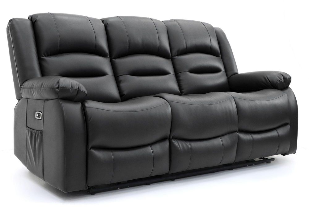 Alva Electric Recliner Sofa - Black Faux Leather - 3 Seater