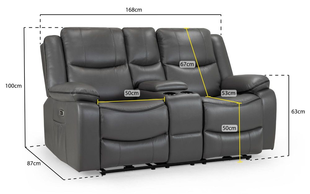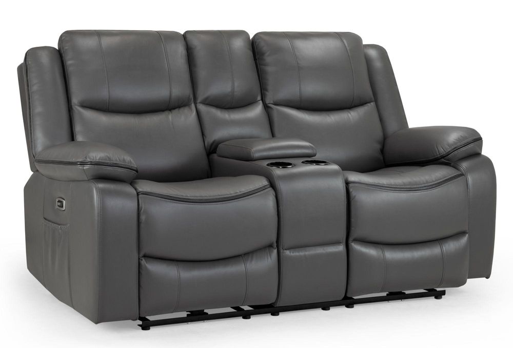 Harald Electric Recliner Sofa - Grey Faux Leather - 2 Seater