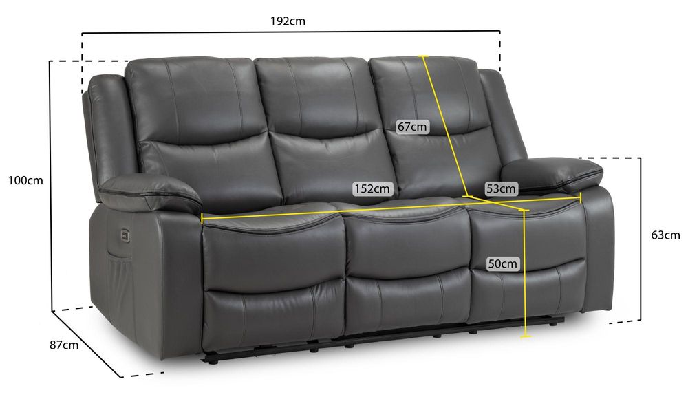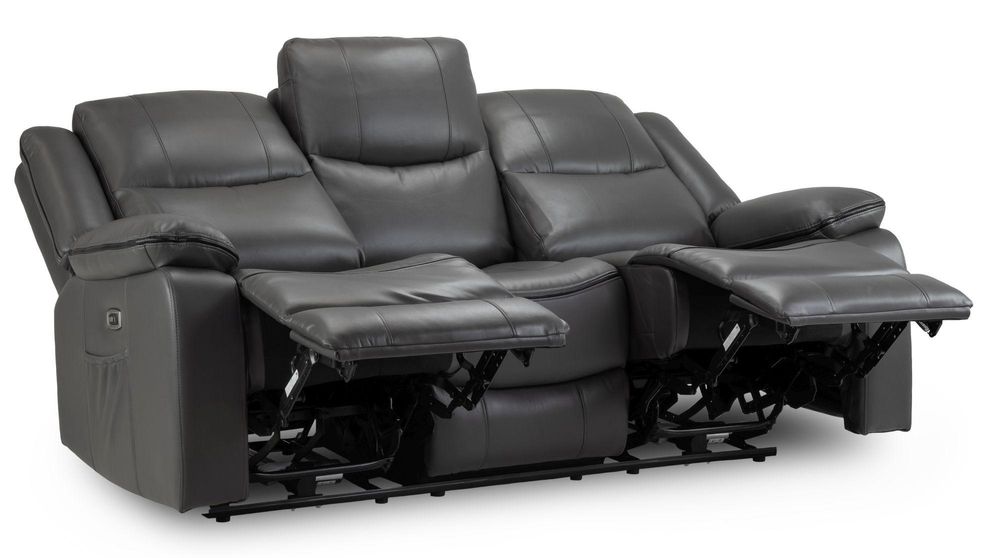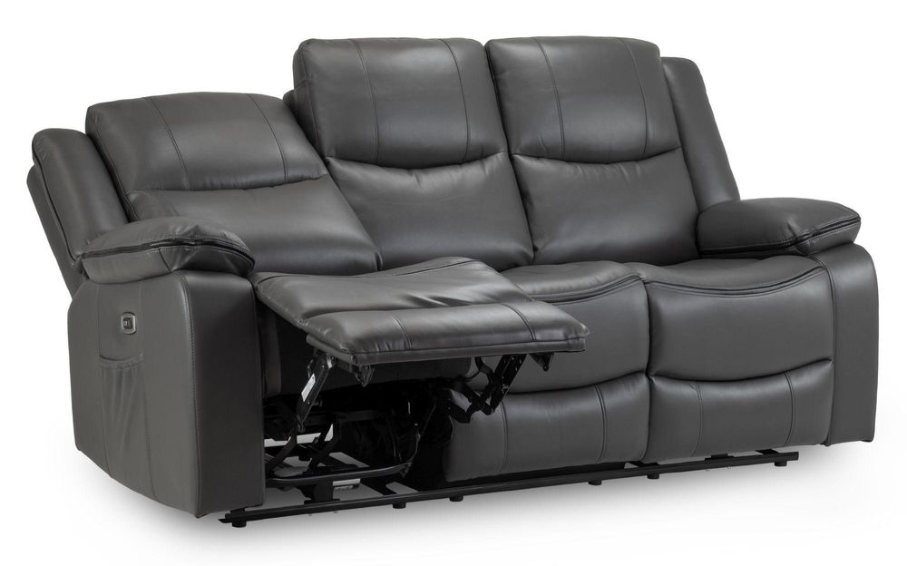 Harald Electric Recliner Sofa - Grey Faux Leather - 3 Seater