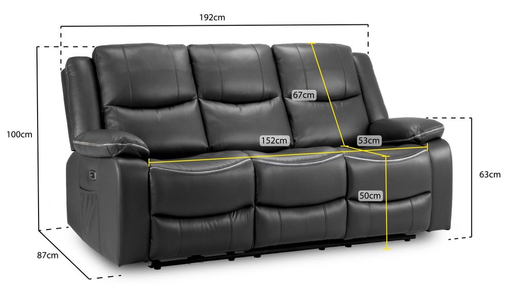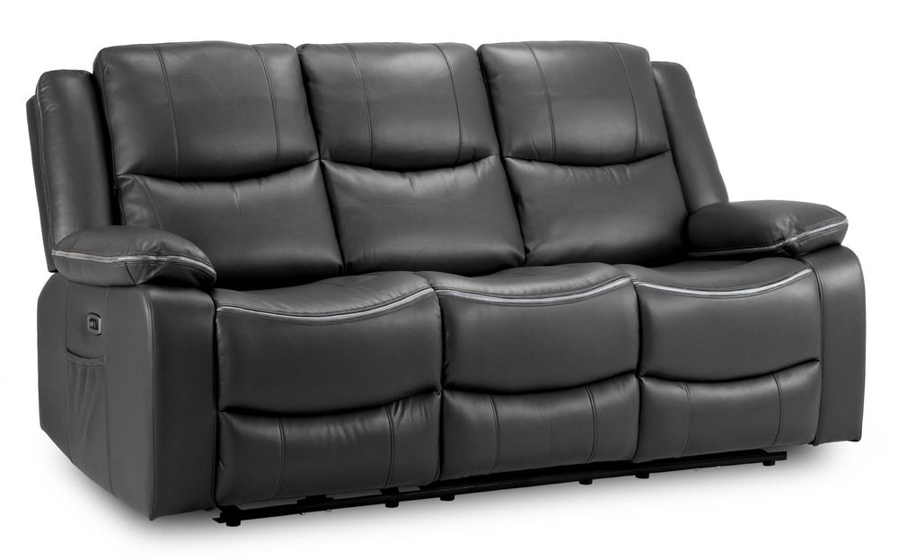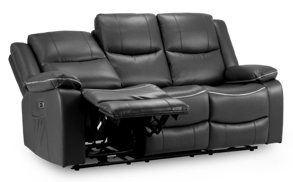 Harald Electric Recliner Sofa - Black Faux Leather - 3 Seater