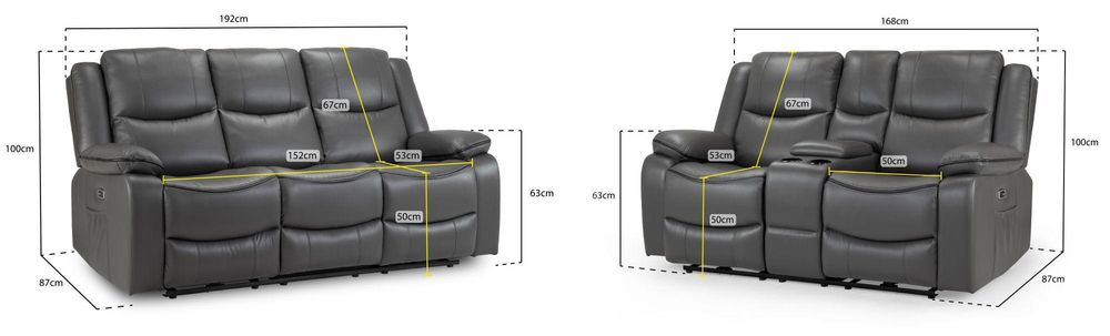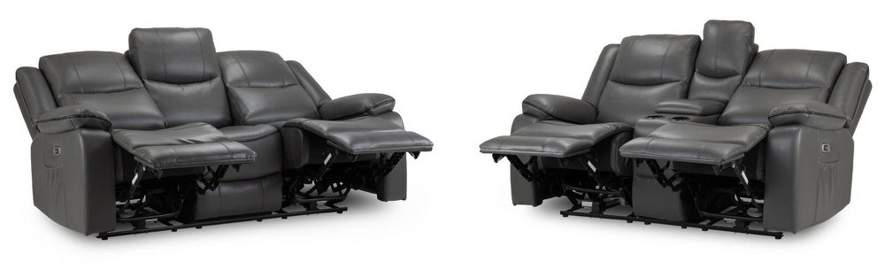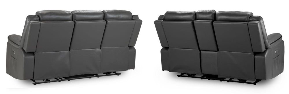 Harald Electric Recliner Sofa Set - Grey Faux Leather - 3+2 Seater