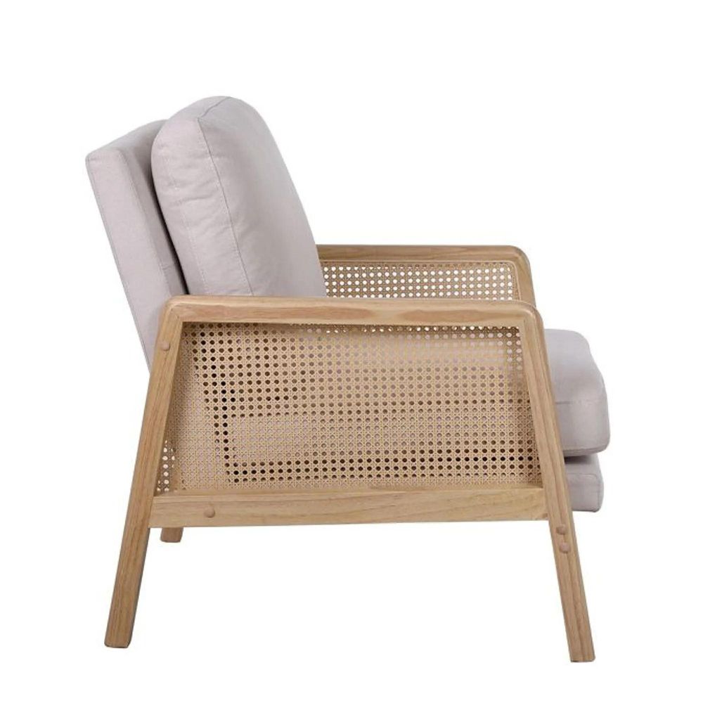 Ida Armchair - Cream Fabric and Rattan