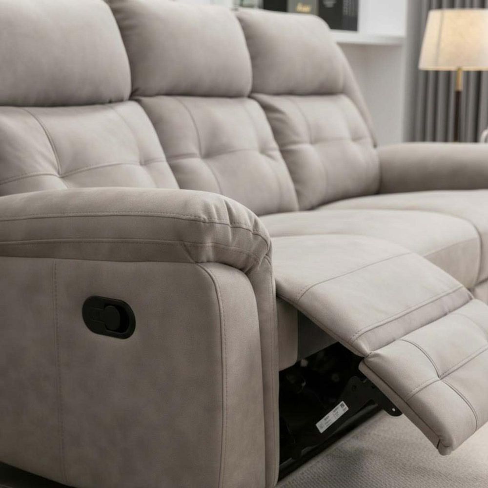 Berkeley 3 Seater Recliner Sofa - Light Grey Leather Look Fabric