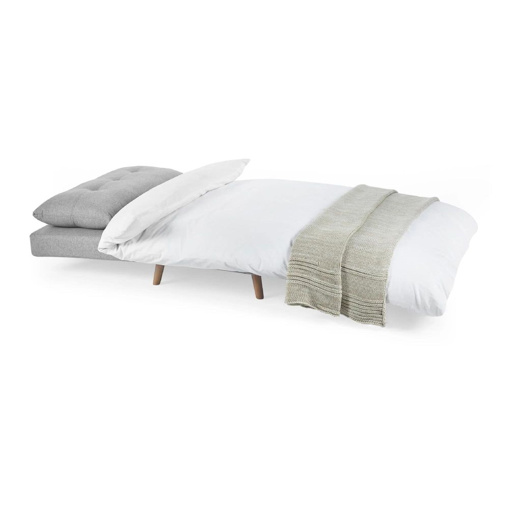 Item Code: ROW001 Effortlessly versatile and stylish, the Rowan Single Sofabed in Grey is a must-have for modern living. Its soft grey upholstery is complemented by elegant wooden-effect legs, adding warmth and charm to any room. . The matching button-tufted pillow enhances comfort, and easily folds out into a comfortable bed, perfect for overnight guests. Designed to be light and easy to move, it fits seamlessly into any living room, bedroom, or guest space. Minimal assembly is required, so you can enjoy its practicality and elegance in no time.