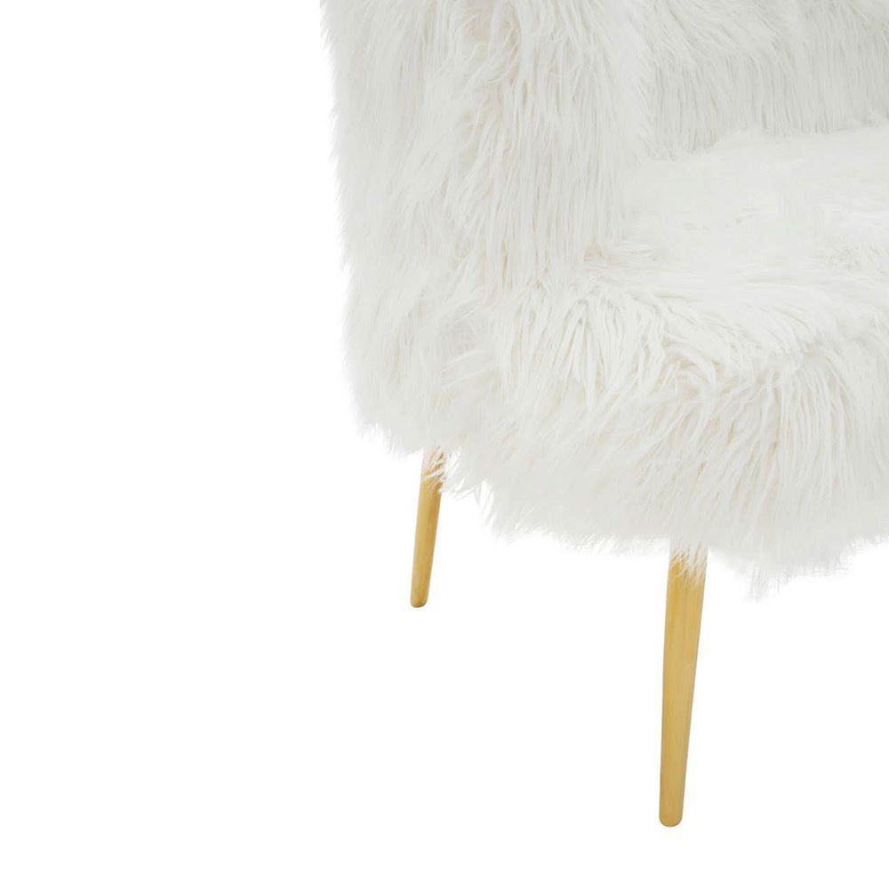 Item Code: 5501673 The Clarence sofa has a luxe vibe to it thanks to the plush white faux fur and gold finished metal legs.The Clarence sofa's seat and curved backrest are upholstered in glamorous white faux fur and are supported by four slender stainless steel legs, positioned at a slight angle. Their reflective gold finish enhances the luxurious appeal of this statement sofa and lends it well to luxe design trend interiors.