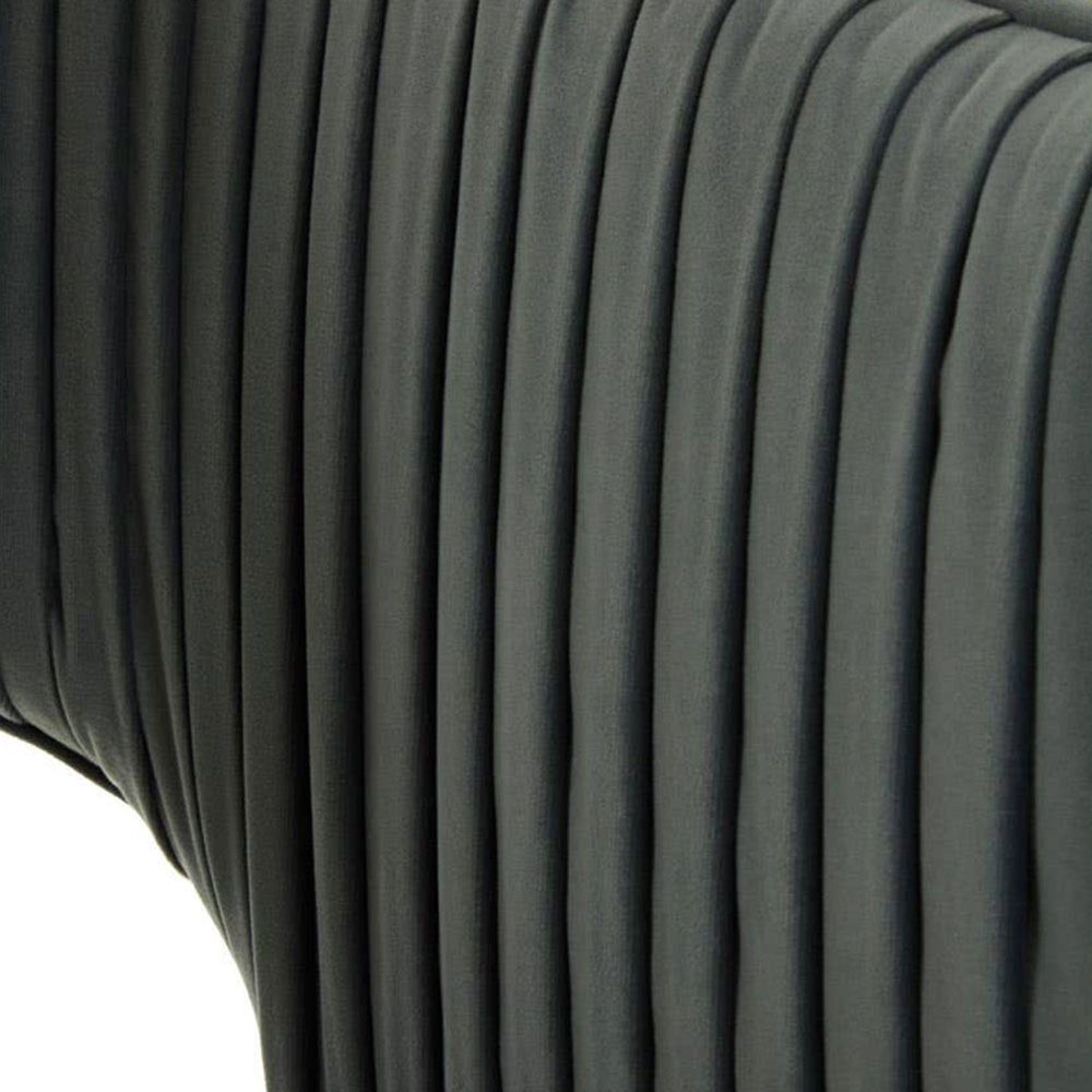 Item Code: 5502524 A chic and sophisticated statement piece, the Hendricks sofa's back boasts a unique cut-out design with gold finish legs.The tactile dusky blue velvet upholstery has been pleated on the sofa's backrest, adding a sense of texture. Gold finish legs are slender and elegant and provide a stark tonal contrast to the muted tone of the soft upholstery. Two cushions perfectly finish in distinctive design enhance its comfort.