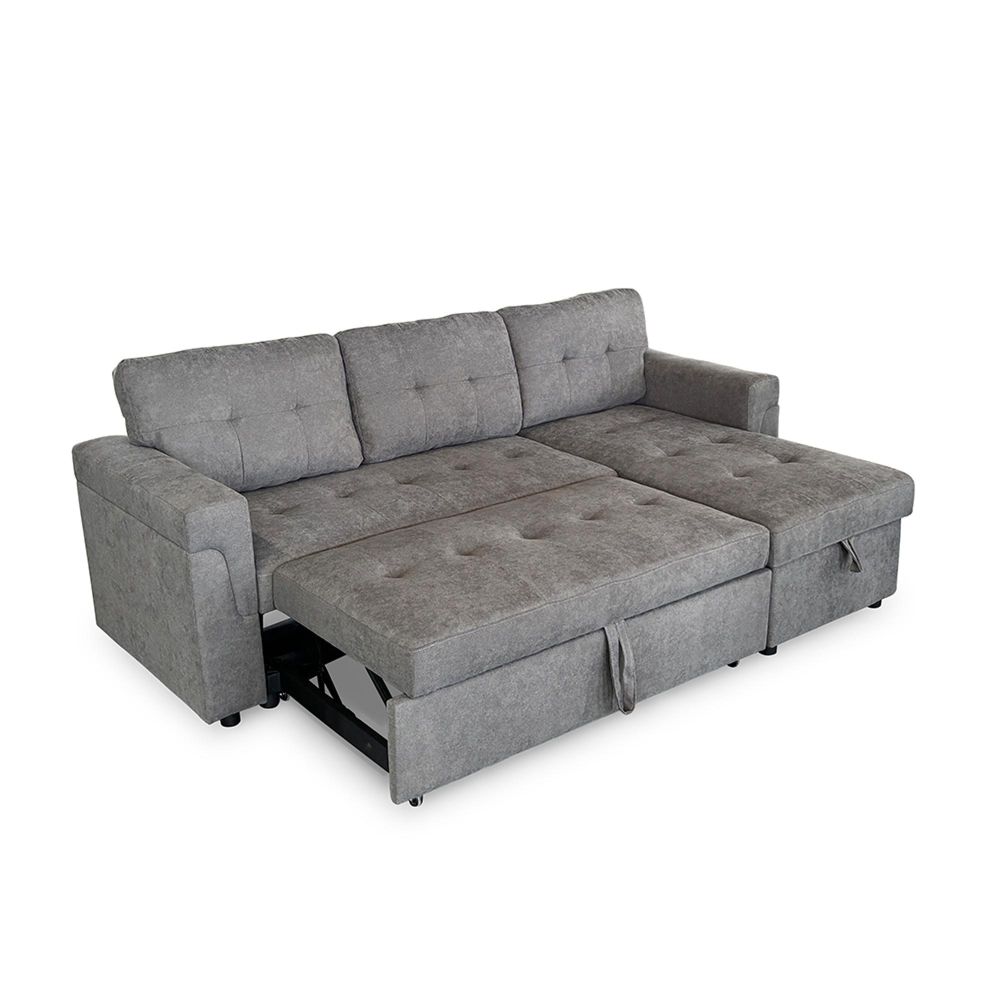 Omniya Corner Sofa Bed - Grey Fabric - Pull Out