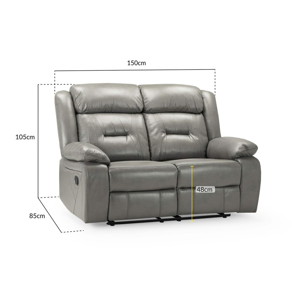 Novie Manual Recliner Sofa - Grey Faux Leather - 2 Seater