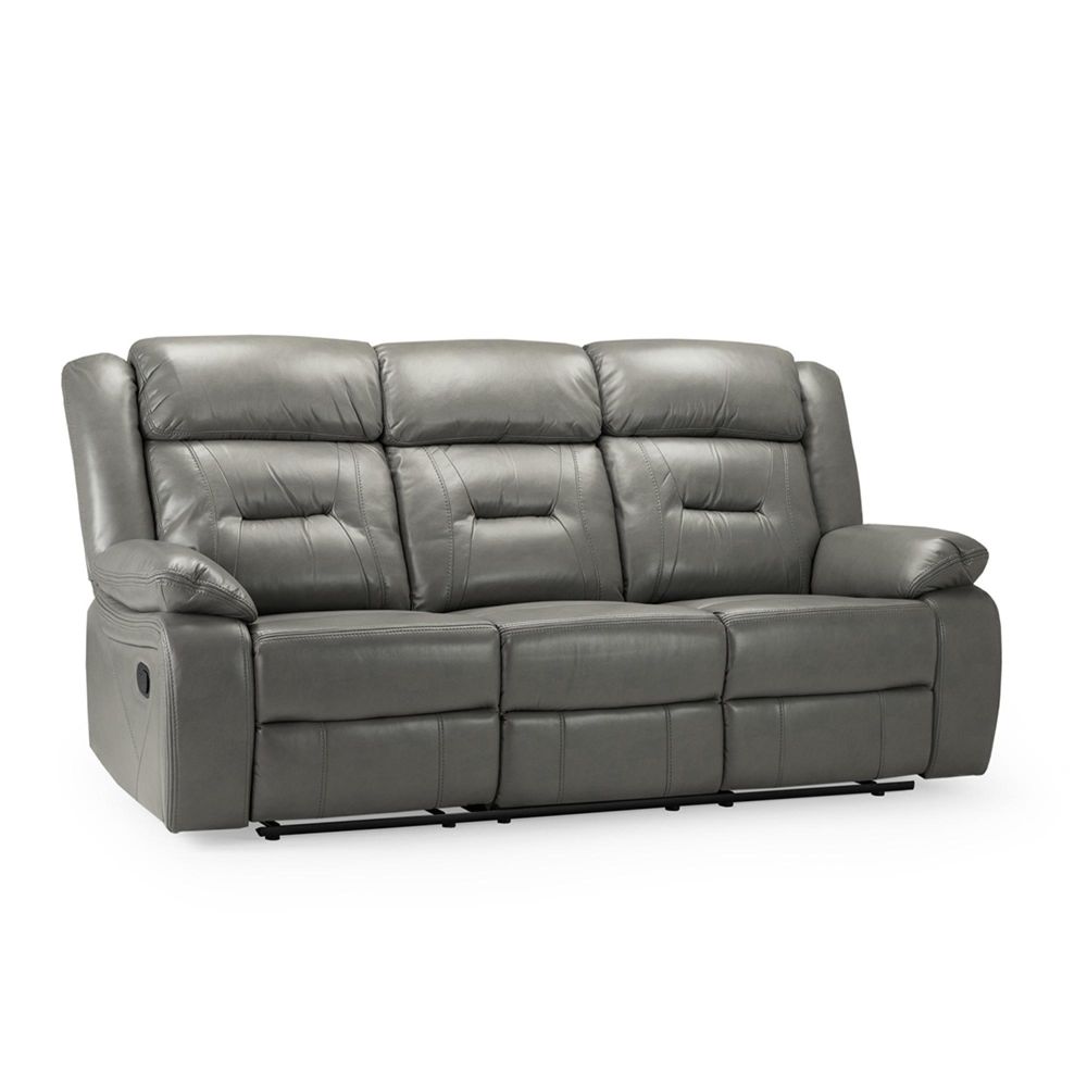Novie Manual Recliner Sofa - Grey Faux Leather - 3 Seater