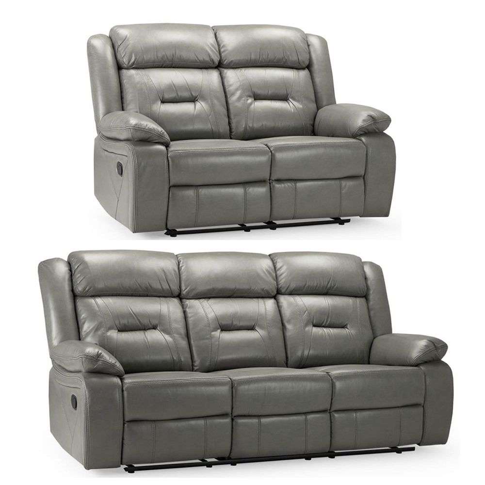Novie Manual Recliner Sofa Set - Grey Faux Leather - 3+2 Seater