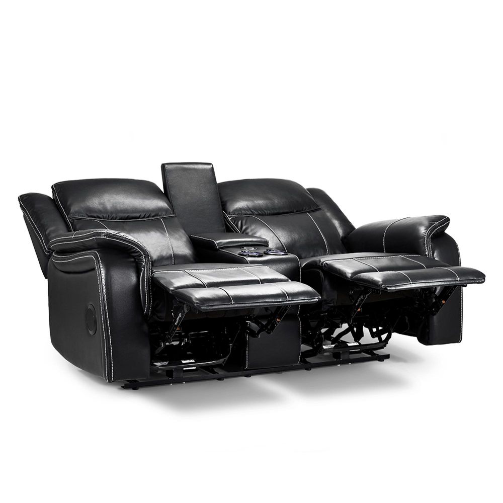 Galaxy Electric Recliner Sofa - Black Faux Leather - 2 Seater - Console
