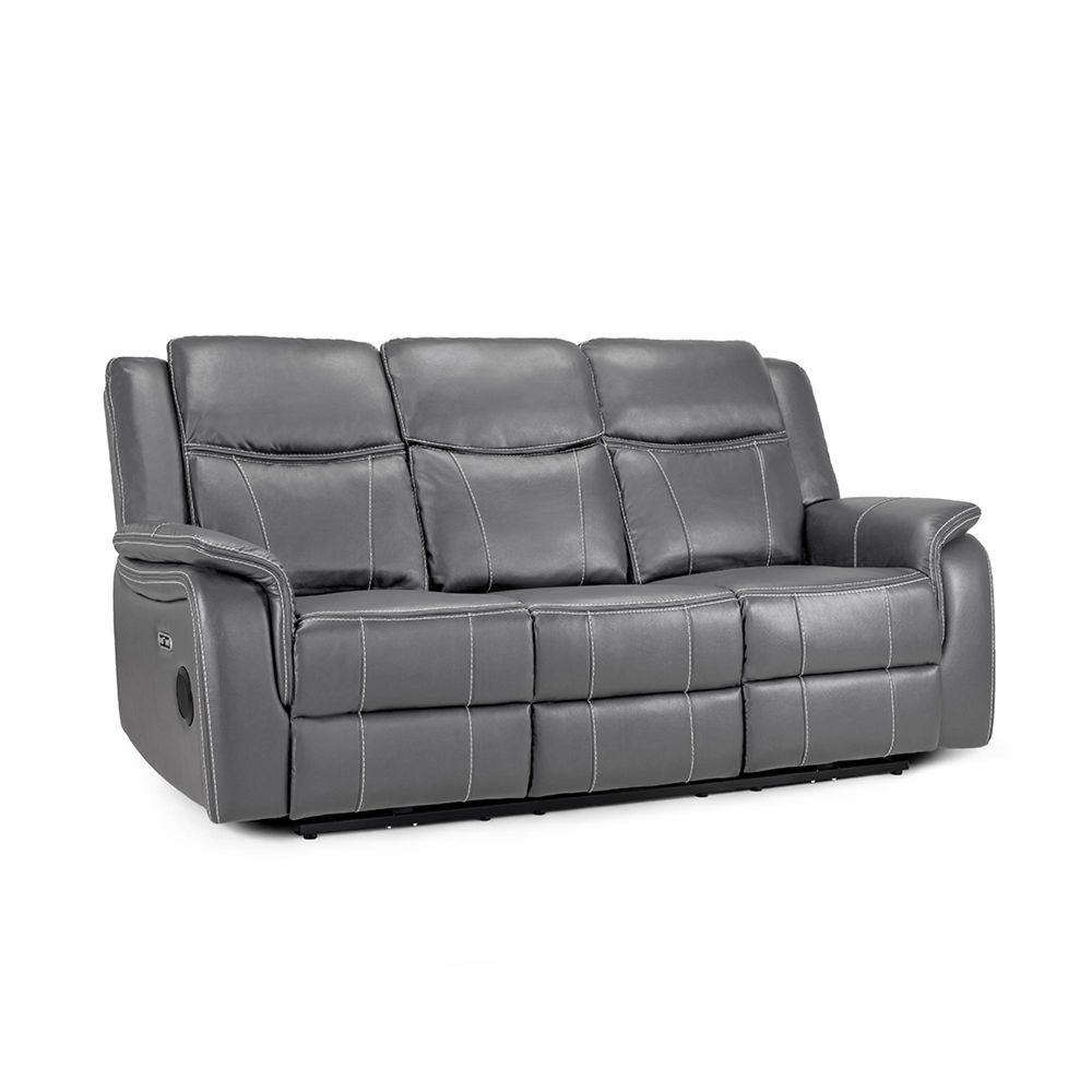 Galaxy Electric Recliner Sofa - Grey Faux Leather - 3 Seater