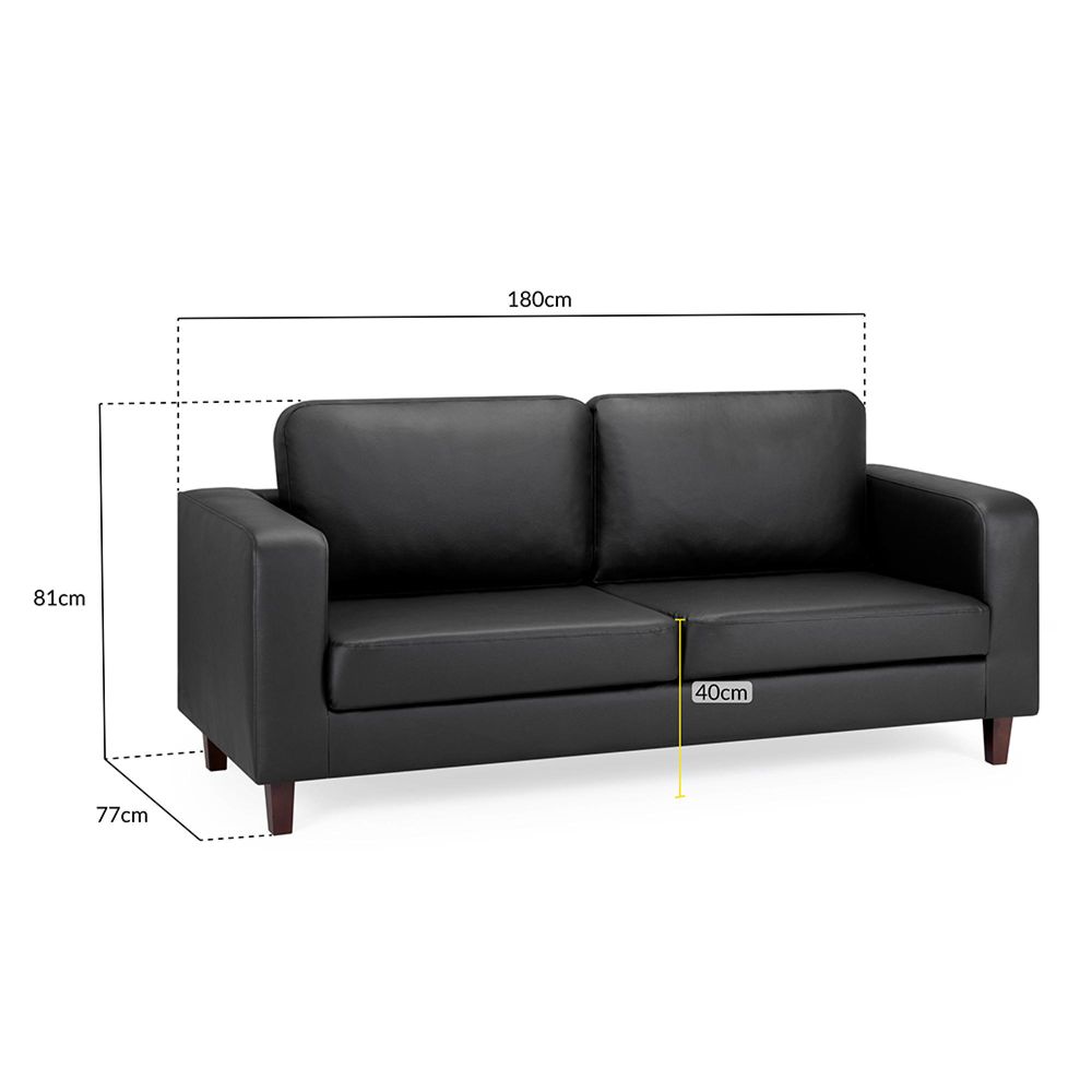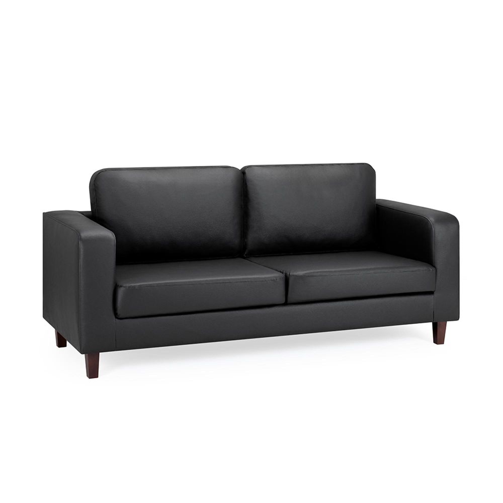 Box Sofa - Black Faux Leather - 3 Seater