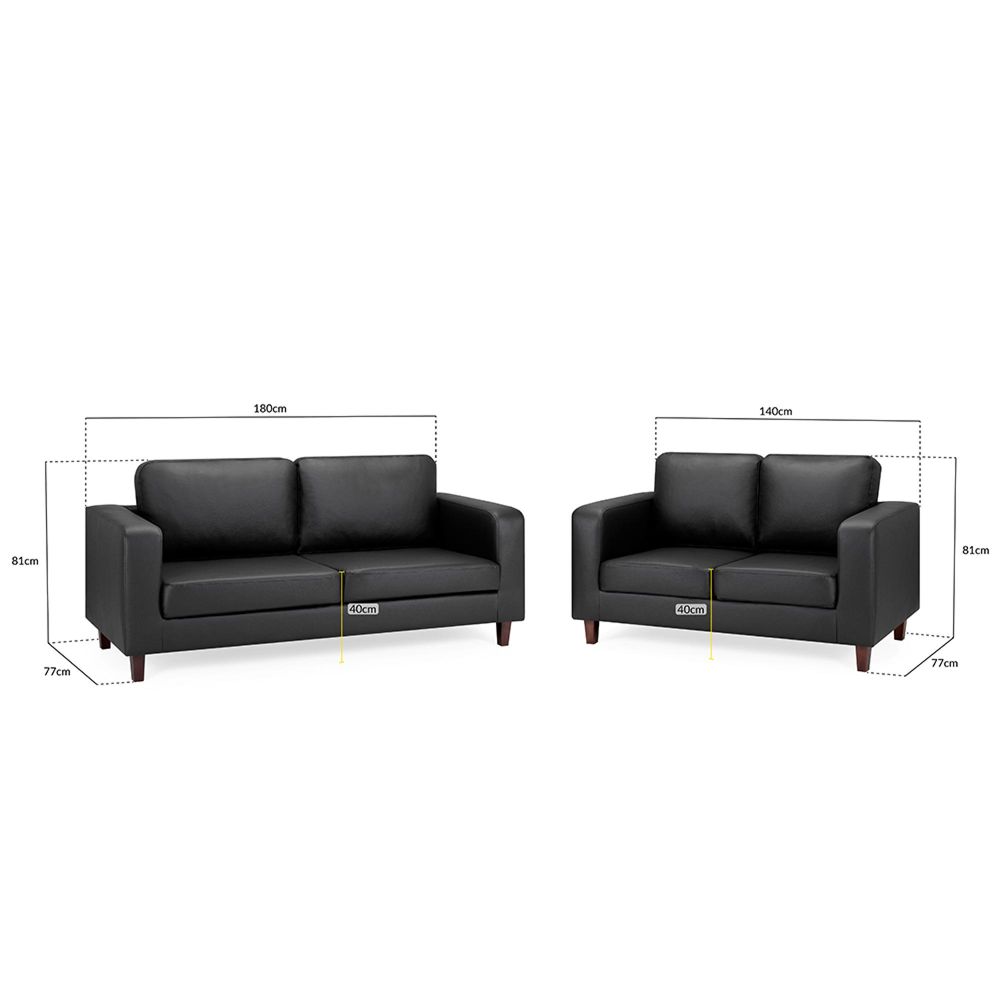 Box Sofa Set - Black Faux Leather - 3+2 Seater