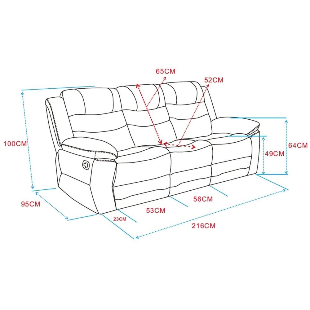 Built with a manual recline mechanism, each seat allows you to lean back effortlessly, making it suitable for quiet evenings, family gatherings or weekend unwinding. The generous proportions provide a comfortable setting for three, while the ergonomic shape encourages natural posture and gentle lumbar support. Its versatile design blends well with a variety of interior palettes, creating a cosy yet polished focal point in your home.
