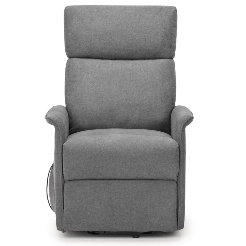 Item Code: HEL101 The Helena Rise and Recline Chair is a deep, soft and extremely comfortable chair in a charcoal fabric finish. Offering stlye and practicality, this chair is the perfect addition for a wide range of home decor. Featuring a motorised mechanisim that provides a helpful lift out, or relaxing reline position at the touch of a button.