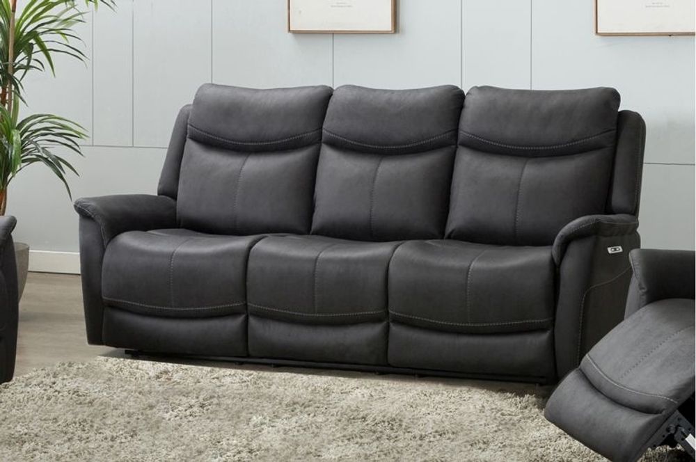 Arizona Electric Recliner Sofa - Grey Fabric - 3 Seater