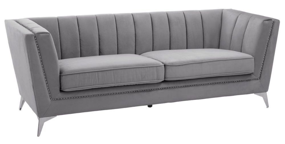 Hansa Sofa - 3 Seater - Grey Velvet Fabric