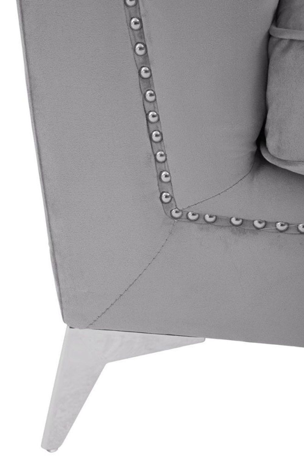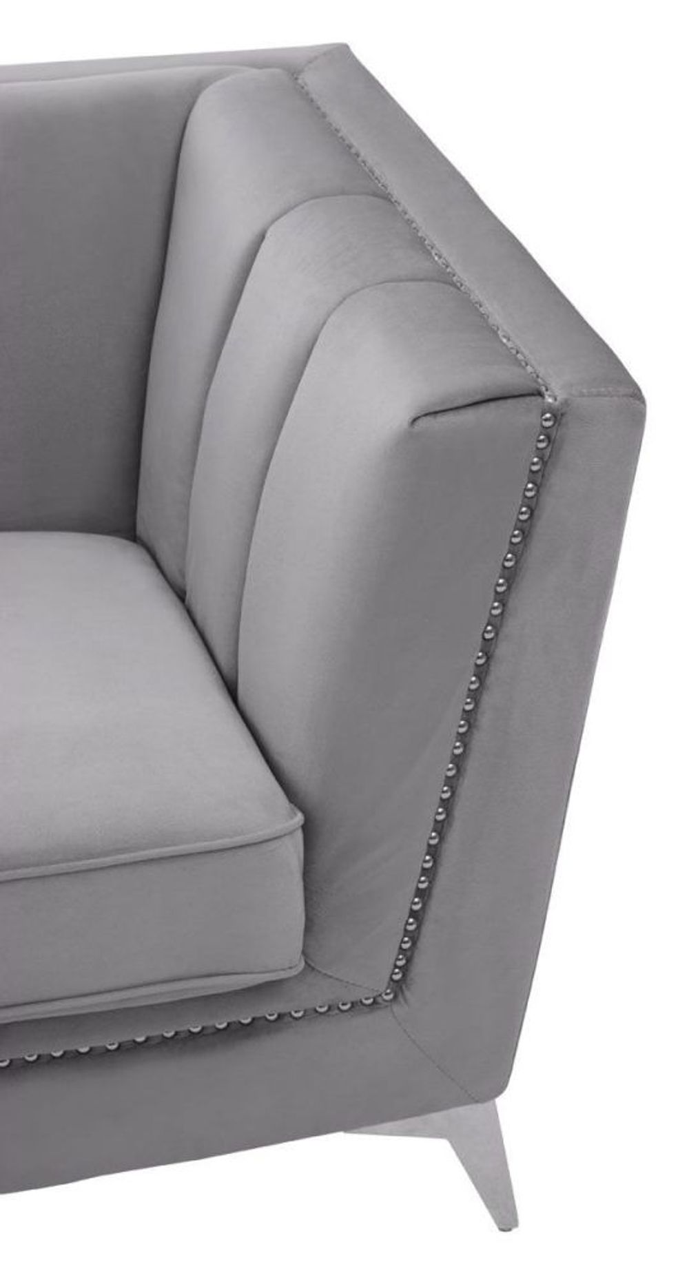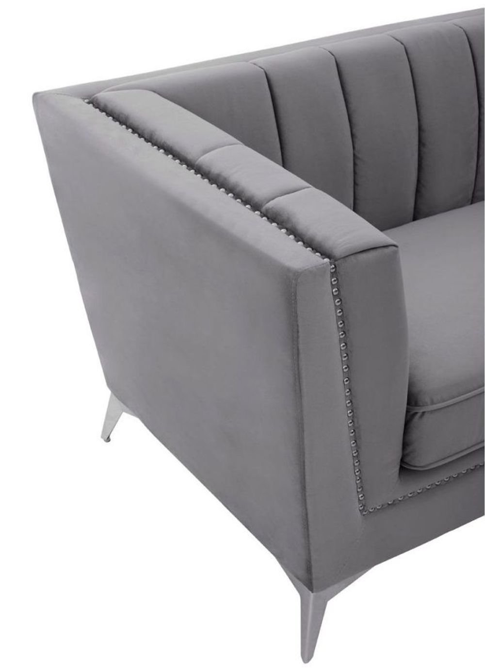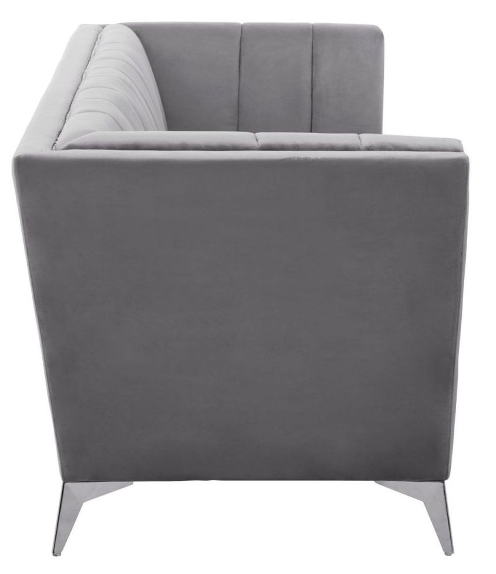Item Code: 2405923 Lending a timeless design to the interior, the Hansa sofa will add comfort with style to a variety of abodes.The tapered design of this three-seat sofa set will create a visual statement. Expertly upholstered in sumptuous grey velvet, the channel tufting on the back adds depth to the sofa, while the chromed oblique metal legs will ensure support with style.