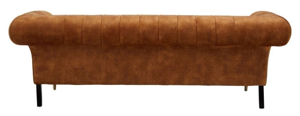 Item Code: 5528783 The Siena three seat gold velvet sofa is a modernised version of the classic chesterfield design.This three seat gold velvet sofa has channel tufting detail that accentuates the tactility and gentle curves of the design. Scrolled arms bring sophistication while pointed legs enhance aesthetics and stability.