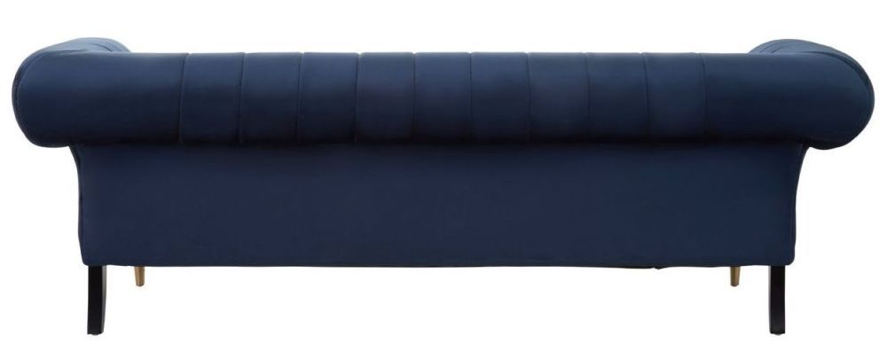 Item Code: 5528781 The Siena three seat midnight velvet sofas a modernised version of the classic chesterfield design.This three seat midnight velvet sofa has channel tufting detail that accentuates the tactility and gentle curves of the design. Scrolled arms bring sophistication while pointed legs enhance aesthetics and stability.