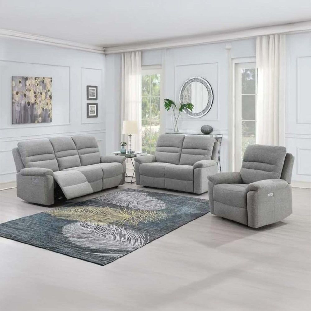 Item Code: 14672 Our Belford Suite comes with a Pocket Sprung seat Introducing our new collection of power reclining suites. The ultimate in laid back luxury. Kick back and relax in any of our six new models with functionality and comfort offering a winning blend. Belford is available as a 3 seater, 2 seater and Armchair with full electric control at the touch of a button. Available in 2 on-trend colour choices, Light Grey fabric and Beige fabric. A USB charger is also included on the control panel as an extra feature for your convenience.