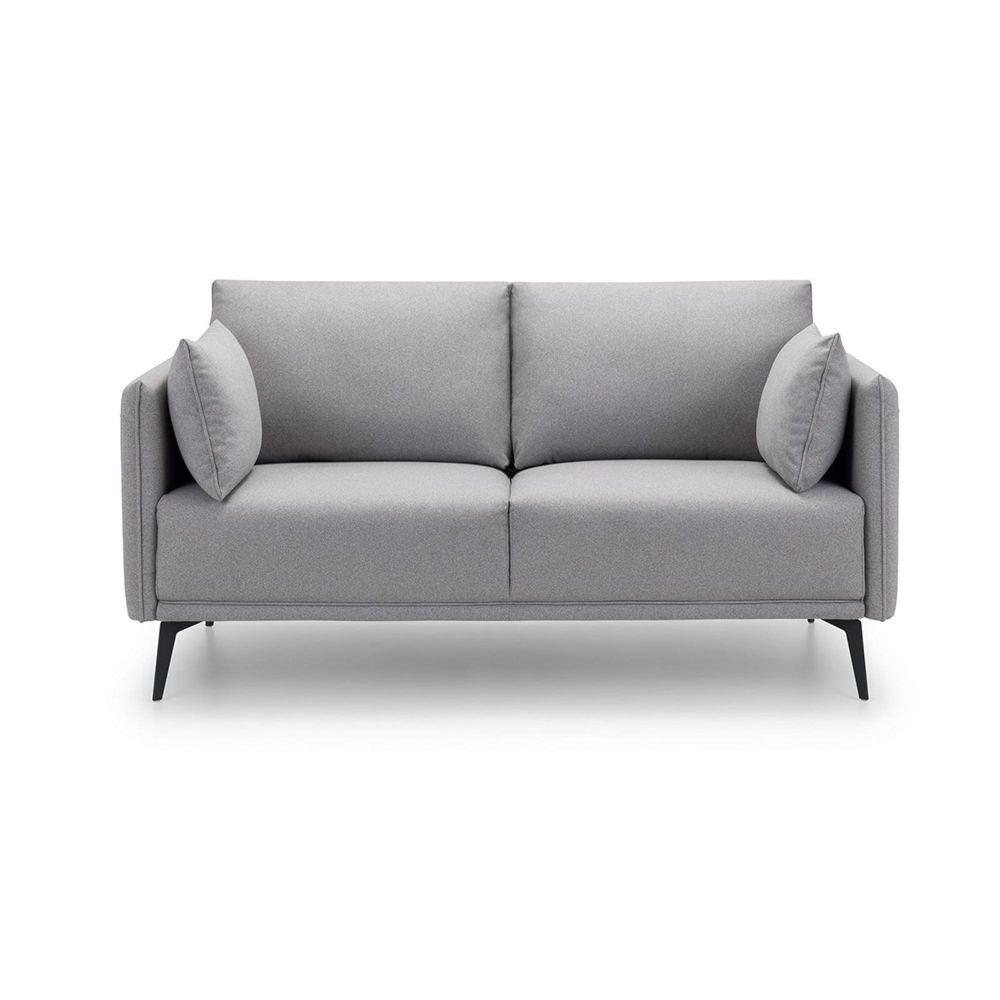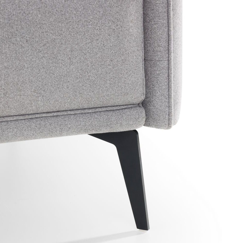 Item Code: ROH002 The Rohe sofa collection is a stunning, contemporary upholstery set with stylish fixed seats and centre piping details. Upholstered in a light grey wool effect fabric, Rohe offers comfort with an ultra modern feel, with removable bolster cushions and sleek black metal legs. The Rohe collection includes a compact armchair, 2 seater sofa, and 3 seater sofa allowing you to create the perfect arrangement to wind down after a tough day.