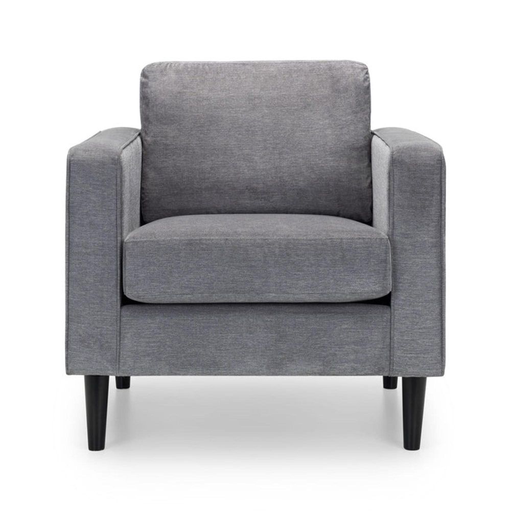 Item Code: HAY201 The Hayward Armchair will add a modern touch to any home. Finished in an elegant grey chenille fabric, this armchair features a padded frame allowing you to relax in style. Accompanied by two leg colour options - black or light oak, this armchair is the perfect design for a range of home decor. Part of the Hayward Upholstery Range from Julian Bowen.