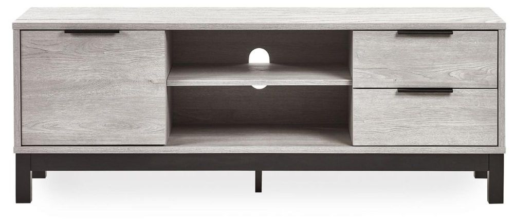 Item Code: BAL110 Discover the seamless blend of style and simplicity with the Bali TV Unit in Grey Oak. Crafted using revolutionary click furniture technology, this unit seamlessly combines high-quality craftsmanship with effortless assembly. The modern grey oak finish, complemented by contrasting black legs and handles, brings a classic industrial aesthetic to your living room. Featuring a spacious cupboard and two pull-out drawers for organised storage, along with center shelving for additional storage and display options.