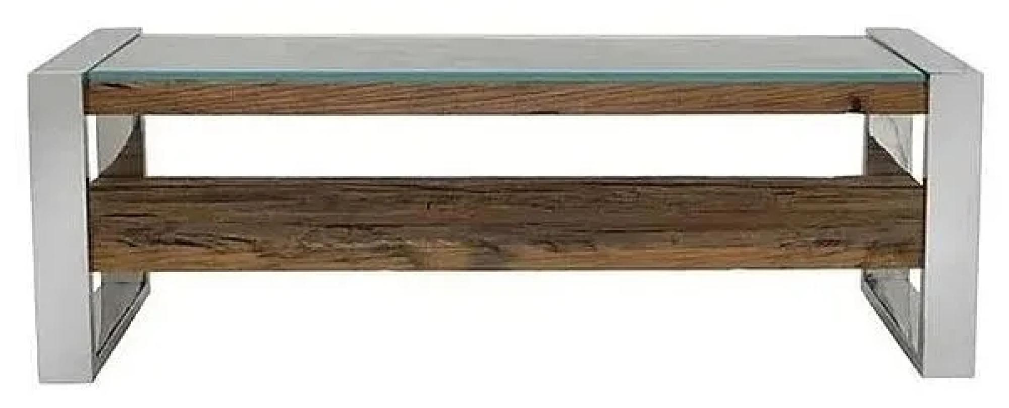 Item Code: 9528 Bringing a contemporary design together with Railway Reclaimed wood and stainless steel, the rectangular Entertainment Unit with one shelf is created from a creative and unique medium which is Railway Reclaimed wood. The beautiful wood grains make every piece of furniture unique and slightly different from the next. The legs are made of durable stainless steel chrome which adds to the table's sturdiness and stability, as well as its industrial style.